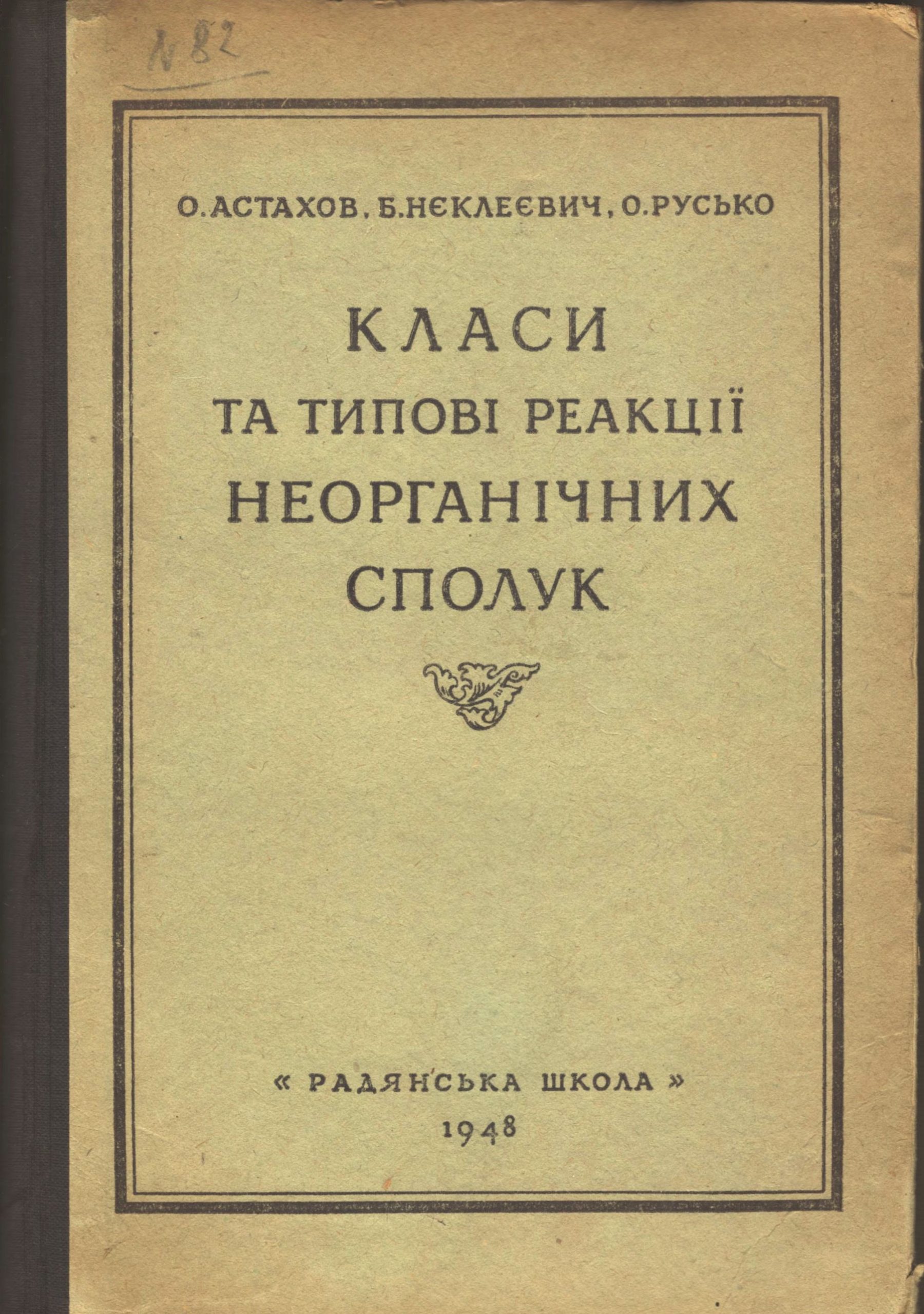 Астахов О. І., Нєклеєвич Б., Русько О. М. Класи та типові реакції неорганічних сполук. Київ : Радянська школа, 1948. 215 с.