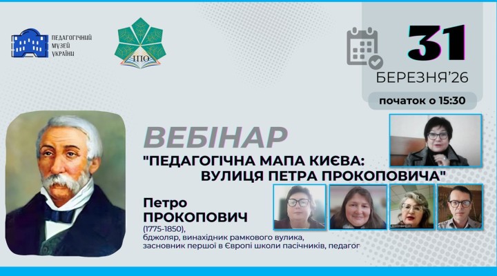 31 березня 2026 р. відбувся вебінар «Педагогічна мапа Києва: вулиця Петра Прокоповича», присвячений постаті Петра Прокоповича (1775–1850) — українського бджоляра, винахідника, педагога та засновника першої в Європі школи бджільництва.