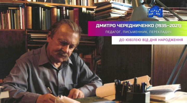 Перелік підручників та художніх творів Дмитра Чередниченка, що зберігаються у фондах Педагогічного музею України, а також окремі світлини з особистого архіву митця.